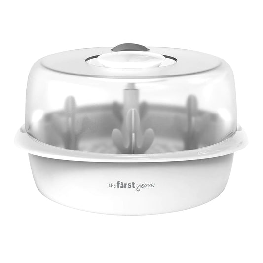 The First Years Microwave Baby Bottle Steam Sterilizer - Sanitizes Baby Bottles Baby Pacifiers Breast Pump Parts - Gray - Baby Bottle Feeding Supplies