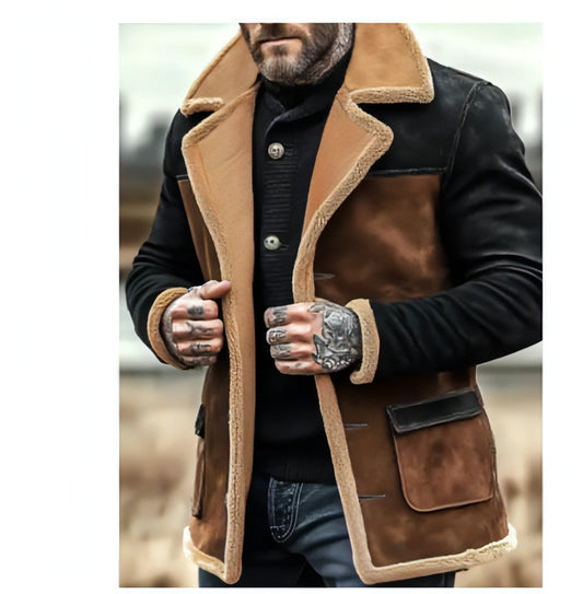 Winter Men's Vintage Suede Color Matching Casual Jacket