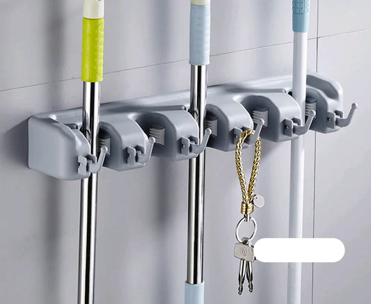 Wall-Mounted Mop Holder with Strong Adhesive (Bathroom)