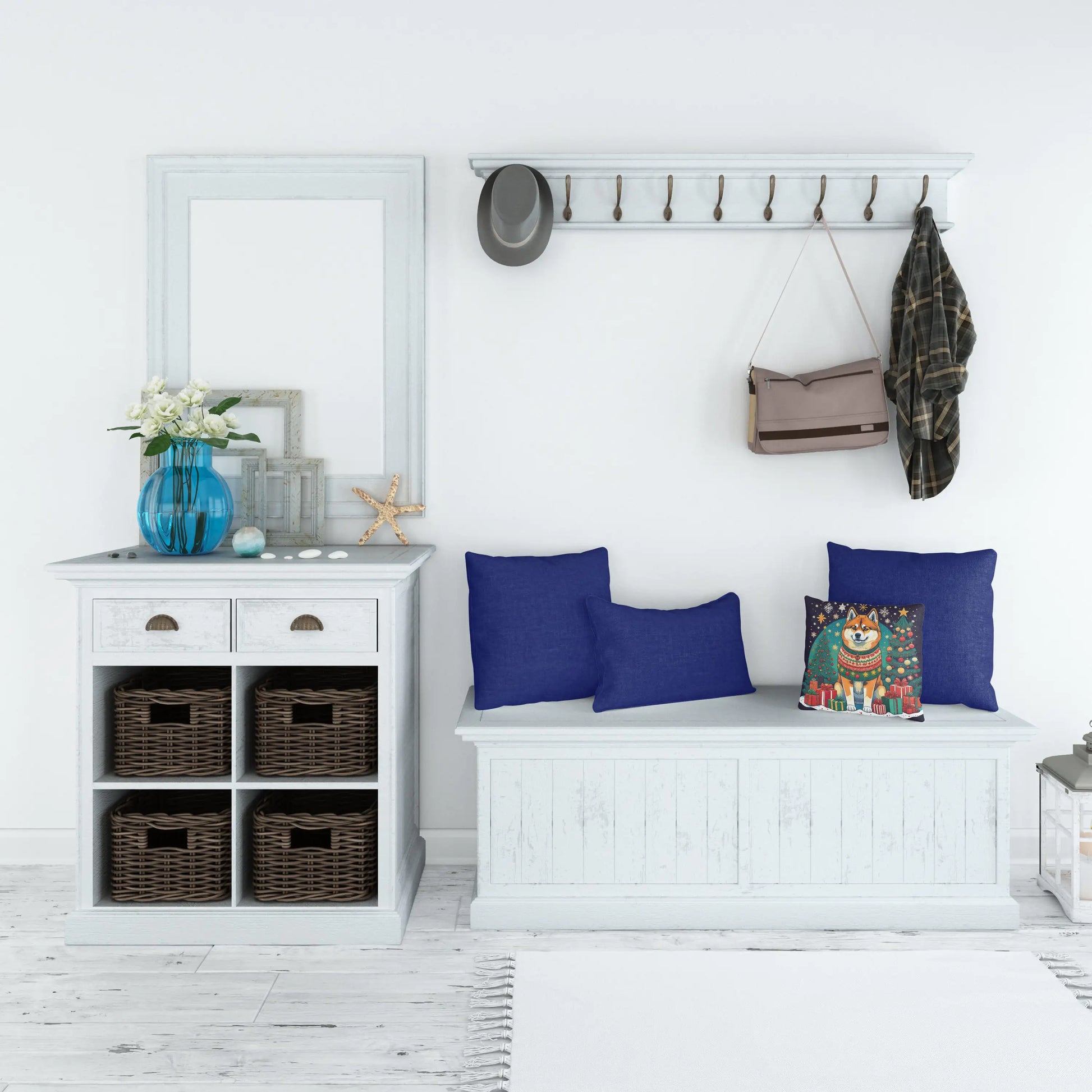 Throw Pillow featuring breed specific Akita artwork. Celebrate Christmas with this Christmas Pillow. Add a touch of vibrancy and comfort to your outdoor seating with Caroline's Treasures Fabric Decorative Pillow. Measuring approximately 14 inches by 14 inches, this outdoor pillow is crafted to elevate the appeal of your patio furniture, infusing it with vivid color and artistic flair. The pillow includes a 100% Polyester Fabric sham filled with a quality pillow form to provide superior comfort. Innovatively made from our brand new material, specifically woven for its water resistance, this pillow is designed for durability. The soft canvas fabric offers versatility in use, fit for your indoor couch or your outdoor patio, porch, or veranda. The fabric is dyed with colorfast dyes built for resilience against weather conditions, ensuring the pillow retains its beauty over time. Constructed by sewing three fabric pieces to create a sham, the polyester insert is then nestled inside to form the pillow, resulting in an overstuffed pillow that maintains its shape. Both the sham and the pillow insert are proudly made in the United States. As the pillows are handcrafted, there may be minor variations in size, further enhancing their unique charm. Experience comfort in style with Caroline's Treasures Fabric Decorative Pillow.