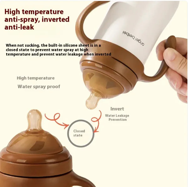 The ThermoGrip™ Stainless Steel Thermal Feeding Bottle is designed to keep your baby's drinks at the perfect temperature for hours. Made from high-quality stainless steel, this bottle ensures excellent insulation, maintaining the heat or cold of liquids for extended periods. The easy-to-hold handle offers added convenience for feeding, while the spill-proof design ensures safe and mess-free use. Ideal for both feeding at home or on the go, this thermal bottle is durable, lightweight, and easy to clean—making it an essential addition to your baby care essentials.