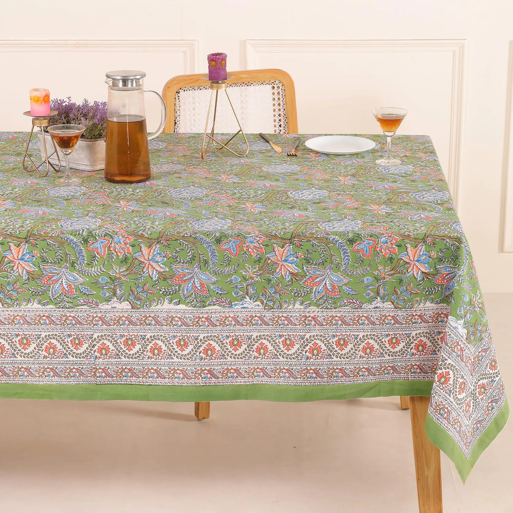 COTSILER Premium Handblock Printed Cotton Floral Tablecloth/Table Cover Rectangular Washable Pre-Washed Event Dining Thanksgiving (Green-D11 72x108 Inches)