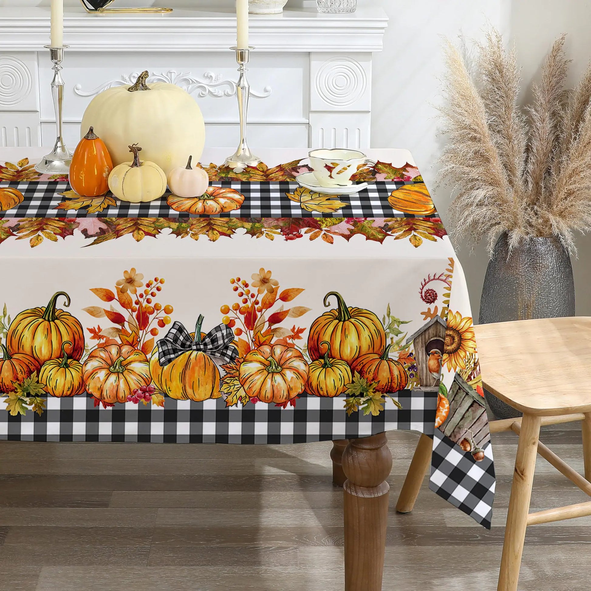 cusugbaso Fall Tablecloth 52x70 Inches Farmhouse Pumpkins Fall Decor Water Resistant Black Plaid Thanksgiving Table Cloth Rectangle for Party Dinner