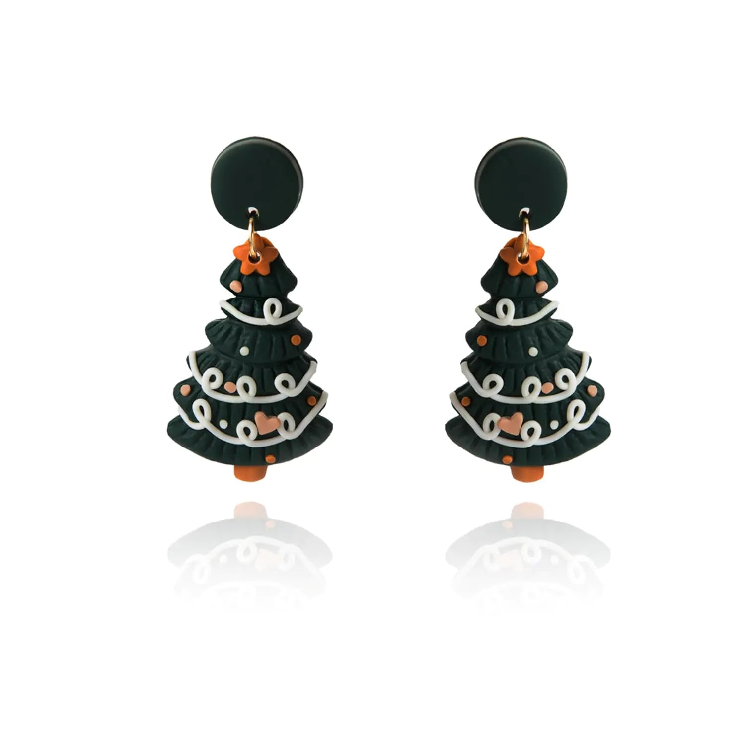 GLUBU Christmas Earrings For Women Fun Christmas Tree Dangle Earrings Green Earrings Lightweight Handmade Clay Earrings Holiday Earrings Christmas Jewelry Gift