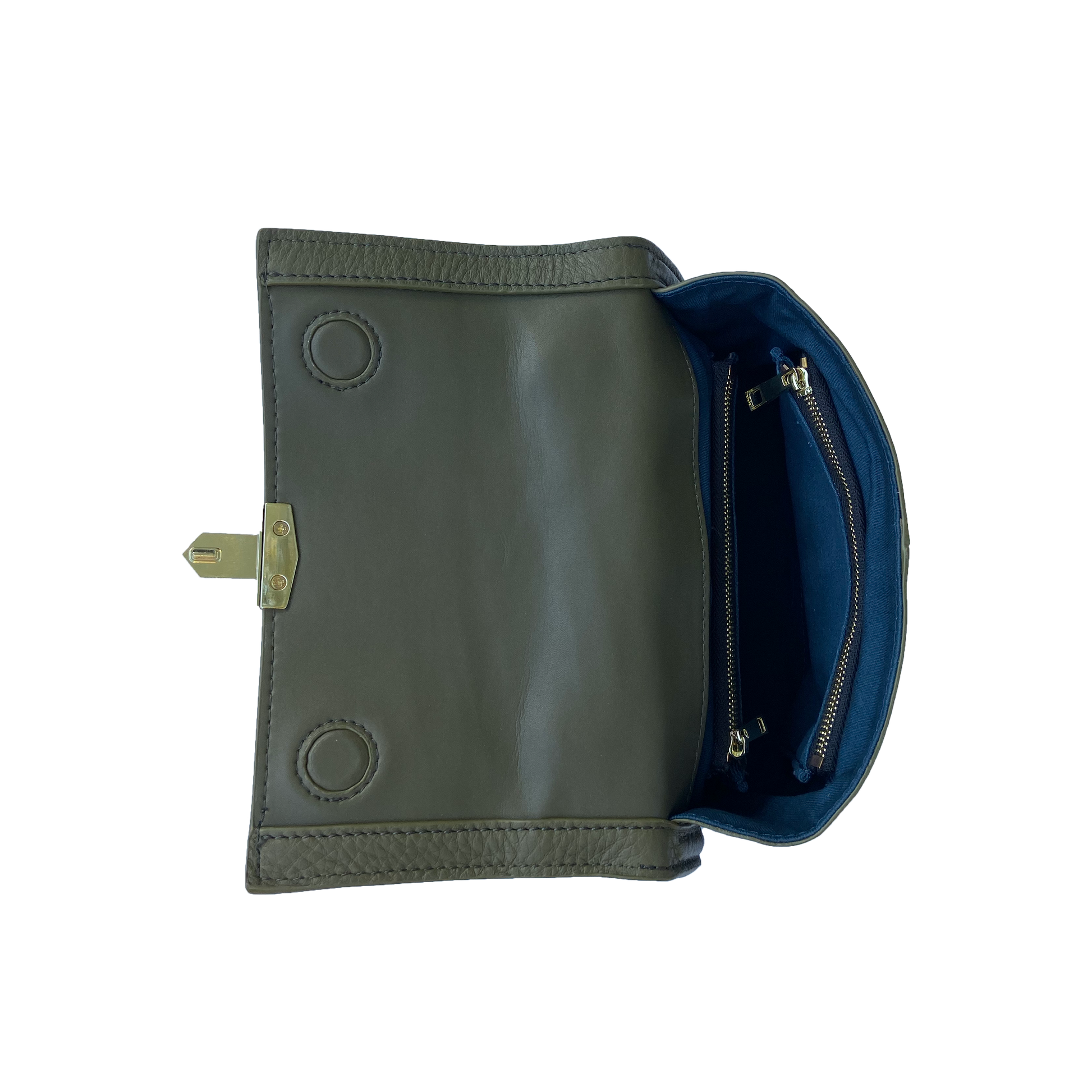 The Linda is a crossbody design that has been leveled up with the ability to convert into a backpack. This makes the Linda perfect for adapting to needs when traveling, texting and being out and about in the cold winter. This posh fashion leather convertible backpack purse features a traditional purse shape and comfortable straps. Additionally, it has a top handle if you prefer to carry it that way. Composed of soft, deep olive green Italian pebble leather, the Linda is simple and effortlessly stylish. The gold push buckle lock is made with two strong magnets for extra security and helps keep the flap structured and in place is complemented by classy gold hardware. This chic leather crossbody backpack addition to your wardrobe will make you feel confident - whether you’re in need of a leather crossbody bag or a leather backpack purse to take on your day.