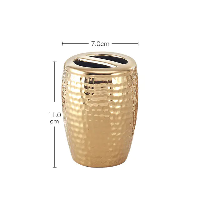 Each item boasts a beautiful gilded finish that adds a touch of luxury to your bathroom decor. The soap bottle is perfect for your favorite liquid soap, while the mouth cup and toothbrush cup keep your essentials organized and stylish. The soap dish ensures your soap stays dry and accessible, and the tray provides a chic display for all your bathroom necessities.