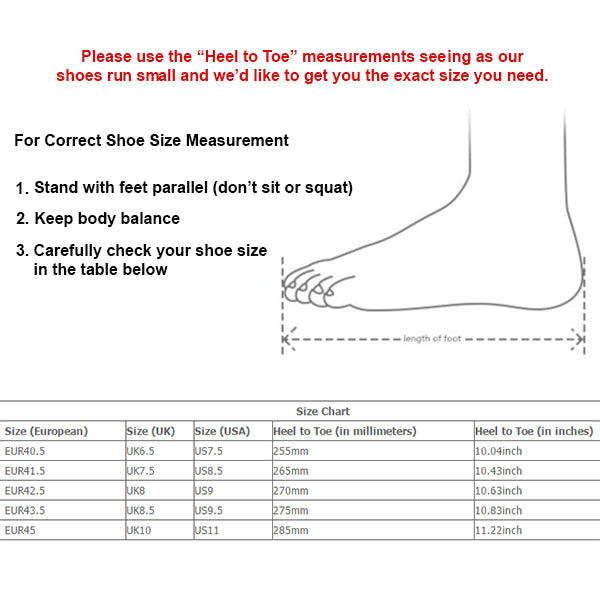 See images for sizing info. Be sure to check the Heel to Toe measurement.