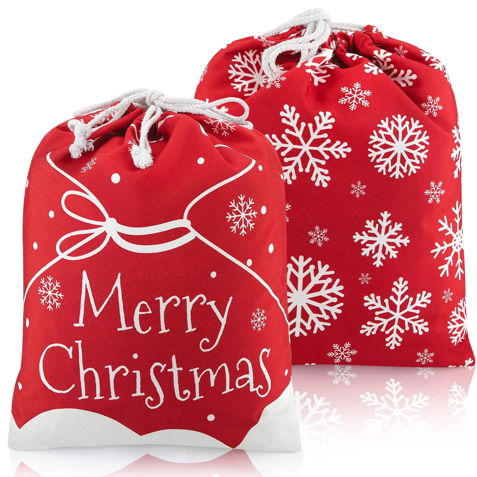 [What You Get--2 pcs red drawstring Christmas bags. Perfect Appearance--The size of our Christmas wrapping bag is 15.9*20 inches which is big enough to meet your needs for holding any Christmas gifts. There are 2 pcs Christmas wrapping bags in our package both of which use red as base one with gift bag pattern and the other with snowflake pattern. Our Christmas wrapping bags will bring a strong Chirstmas atmosphere. Premium Material--Our drawstring gift bags are made of high-quality linen. The bags are sewn closely durable and not easy to break. The patterns on the surface of Christmas gift bags use advanced printing and dyeing technique repeatedly dyed which is clear and unfade. Our drawstring Christmas bags have also passed strict quality inspection and food-grade certification you can wrap food boxes and other items without worry. Thoughtful Design--The large capacity design makes our Christmas gift bags can hold more kinds of gifts such as clothing electronic products food etc. With drawstring on the top not only convenient for packaging but also more strudy. These bags are made of linen more firm and durable which is resusable. Widely Used--Our drawstring gift bags are mainly suitable for Christmas gifts packaging and Christmas decoration (such as decoration for Christmas trees Christmas parties etc.). In addition these bags can also be used as party items home decorations daily items storage and holiday gifts.]