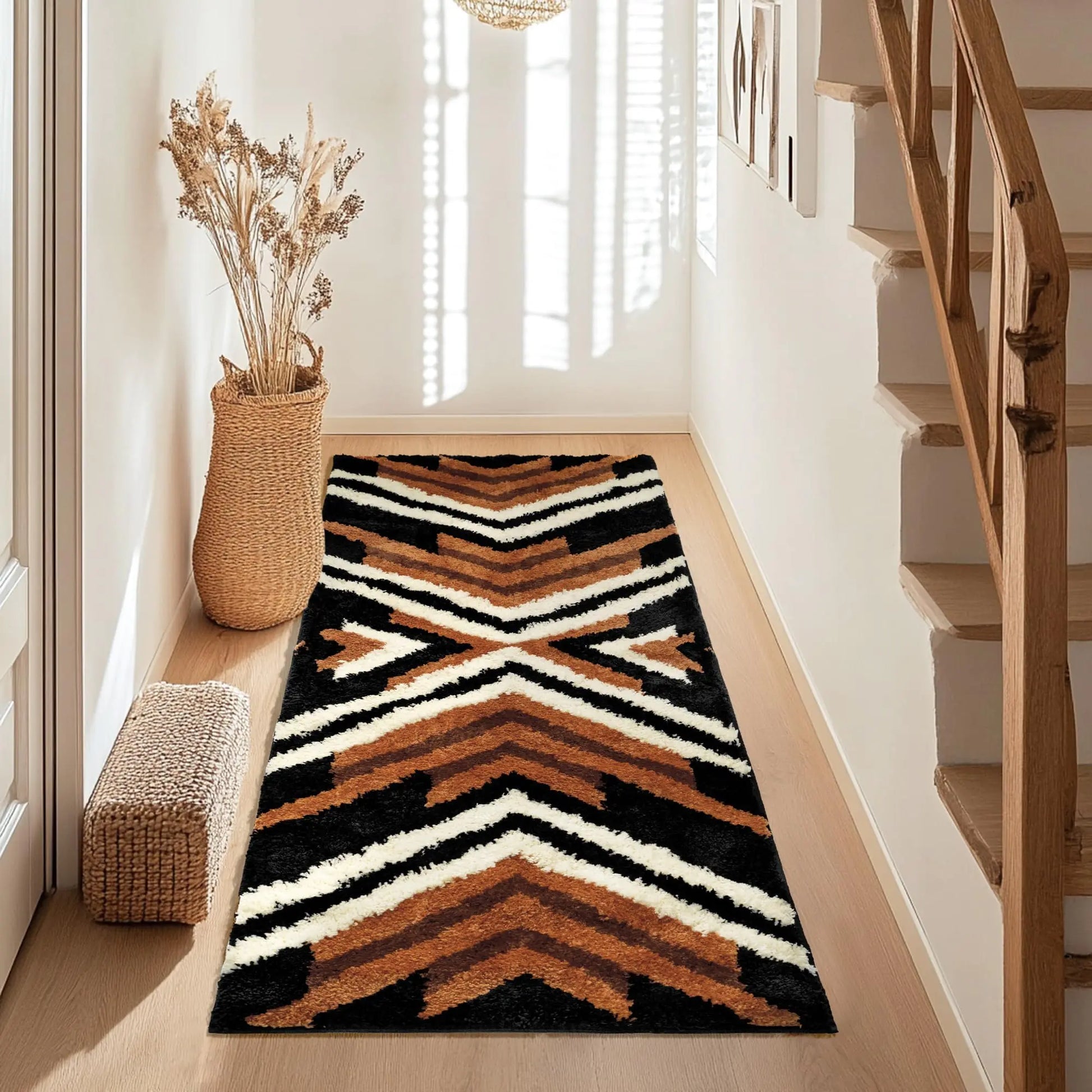 Tyrot Black Boho Long Bathroom Rugs Runner Non Slip Washable Western Aztec Bath Mats Rugs for Bathroom Hallway Plush Soft Absorbent Farmhouse Carpet for Bathroom Shower Kitchen 24x70 inch Brown