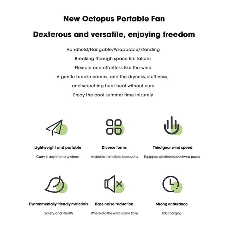 USB Rechargeable Octopus Multifunctional Mini Fan Fixable Small Fan
