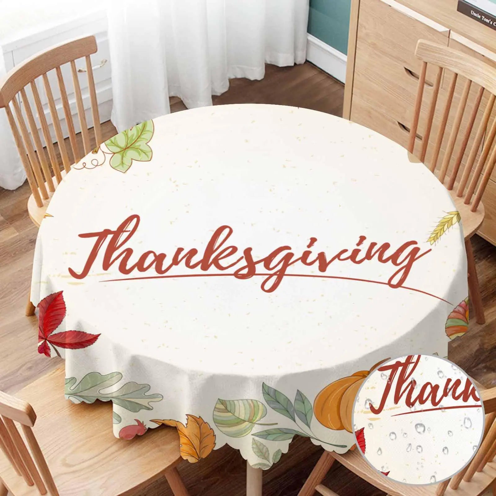 Yibeas Tablecloth Round Thanksgiving Table Cloth Autumn Fall Maple Leaves Pumpkin Yellow Table Cover for Dining Room Kitchen Decoration Round Tablecloths 60 inch