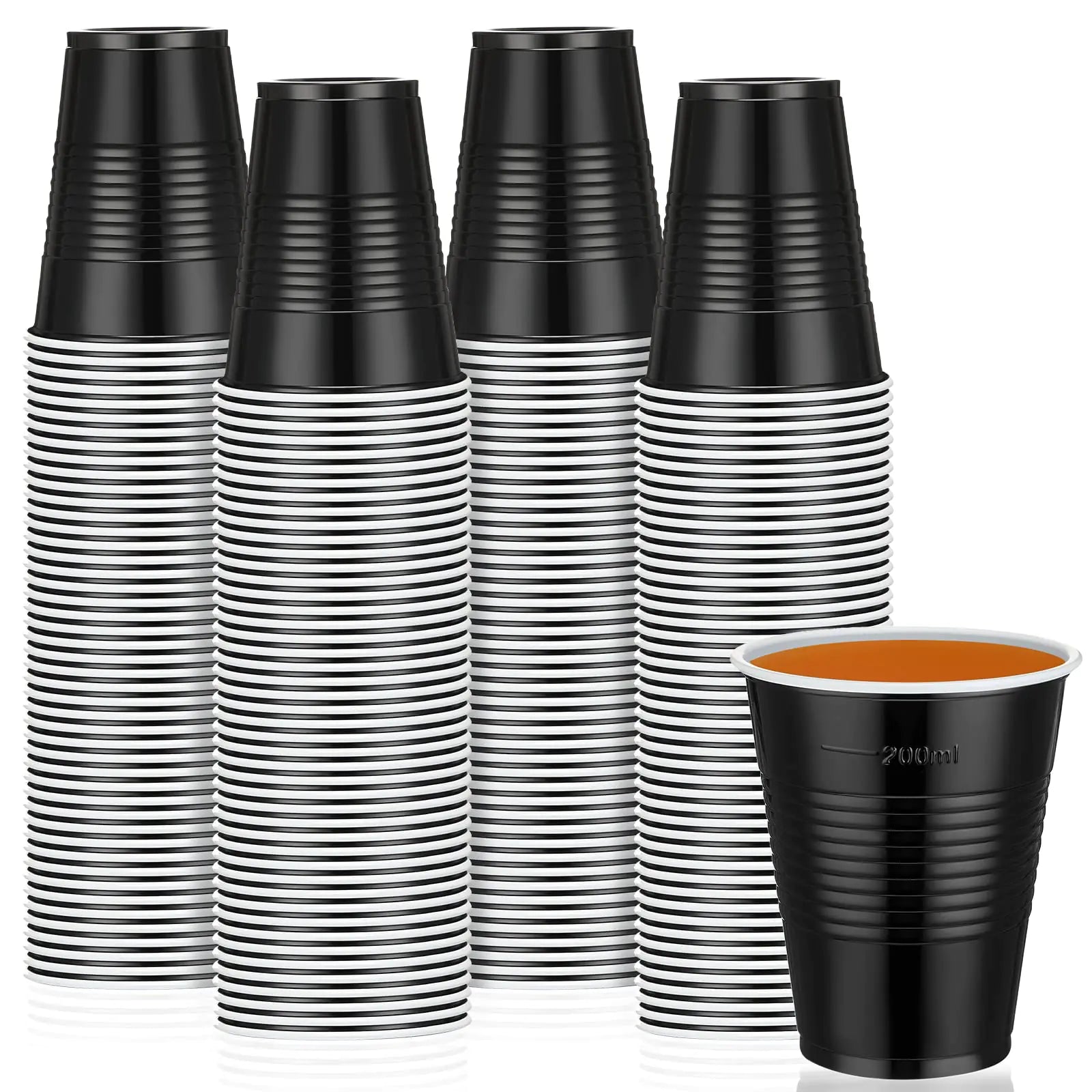 Features:Save time and energy:The water cups are disposable you can throw them into bins after using saving your time and effort to clean up allowing you to enjoy the party time with family members.Share with others:The plastic drinking cups are considerate gifts for family members friend relatives neighbors colleagues and more bringing them much convenience and expressing your care.Specifications:Material: plasticColor: blackSize: about 78 x 48 x 92 mm/ 3.1 x 1.9 x 3.6 inchesCapacity: about 9ozPackage includes:100 x Disposable party plastic cupsNotes:Manual measurement please allow slight errors on size.The color may exist a slight difference due to different screen displays.